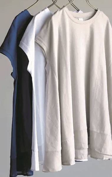 下襬用透的麻材質增添了輕盈感。
